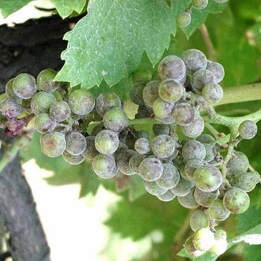 اگر خوشه ها قبل یا کمی بعد از گلدهی مورد حمله قرار گیرند، تشکیل میوه دچار اختلال شده و مقدار محصول کاهش پیدا می کند. قارچ روی غوره ها را به صورت پودر سفید رنگی می پوشاند.
