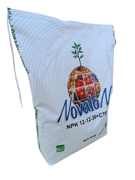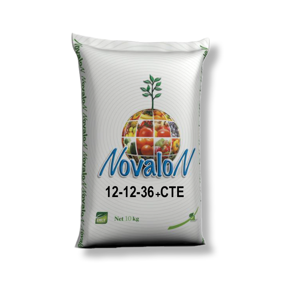 کود نووالون 12-12-36 + TE از سری محصولات حرفه‌ای دکترتارسا (DRT – ترکیه) بوده و به‌صورت پودری کاملاً محلول در آب تولید می‌شود.